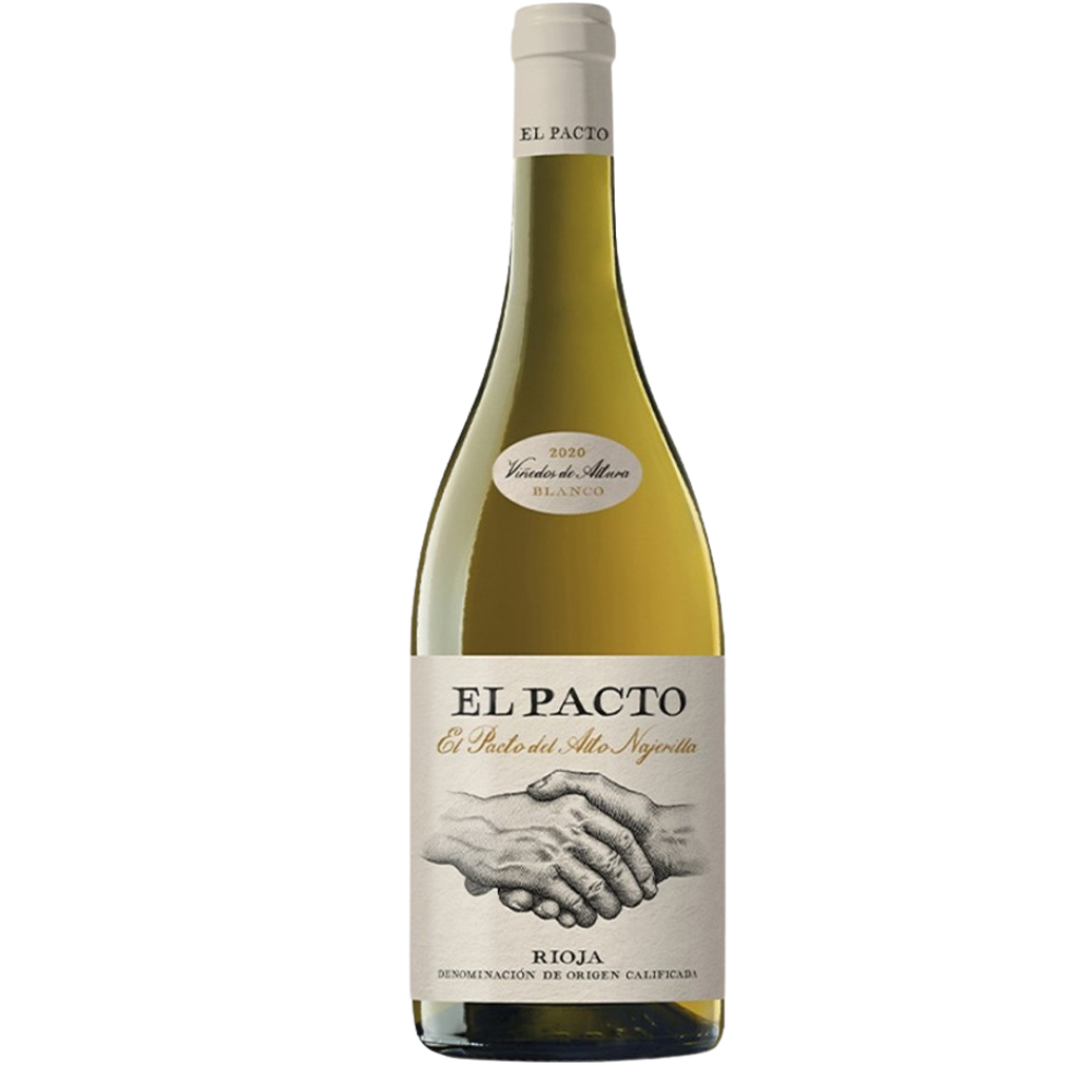 El Pacto Rioja Blanco : blanc élégant aux notes de pêche, agrumes, miel. Parfait avec poisson, volaille ou en apéritif raffiné. À découvrir sans tarder !