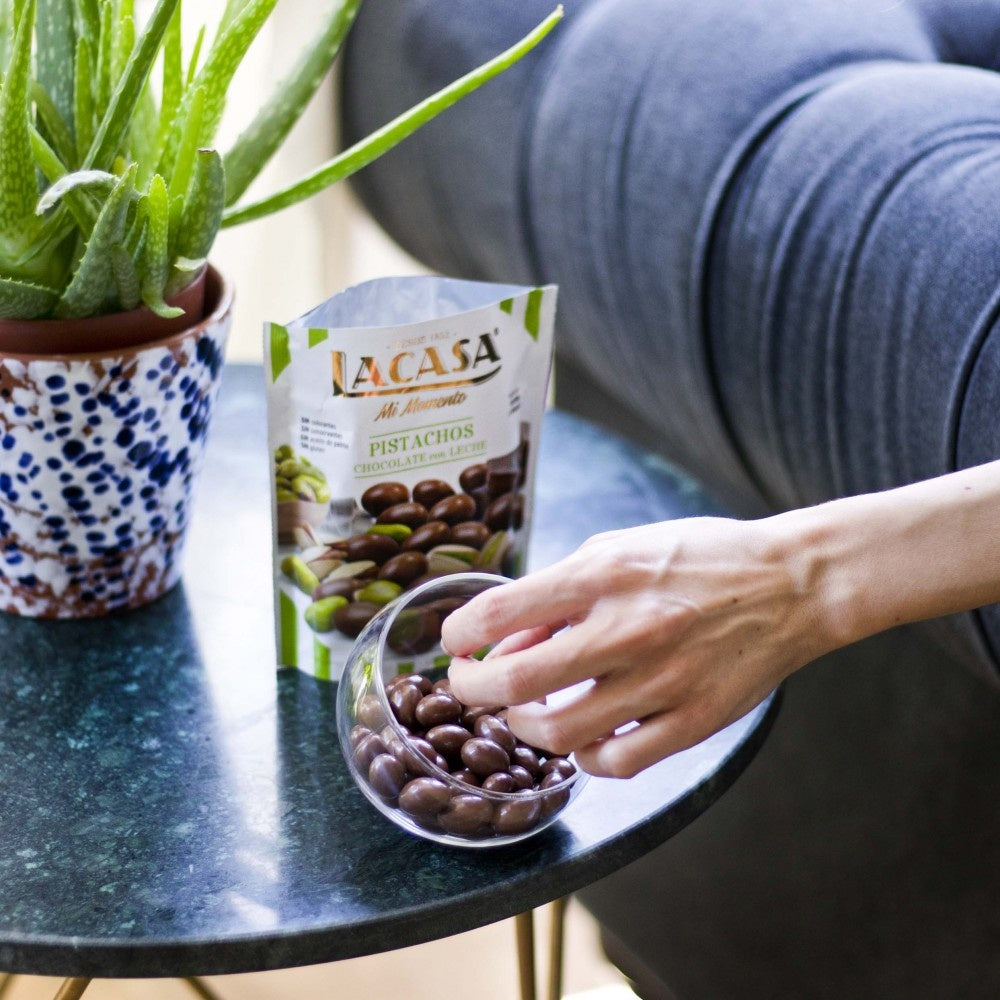 Des pistaches grillées enveloppées de 70 % de chocolat au lait, puis lustrées pour une belle brillance. L’équilibre salin-noisetté de la pistache et l’onctuosité du chocolat créent une bouchée irrésistible—le snack espagnol chic par excellence.