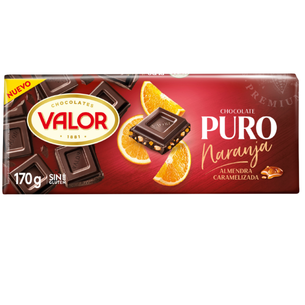 Envie d’un carré d’authenticité espagnole ? Ce chocolat noir Valor contient 70 % de cacao et marie à la perfection l’amertume du chocolat pur, la fraîcheur de l’orange et le croquant des amandes caramélisées. Un pur moment de plaisir gourmet.
