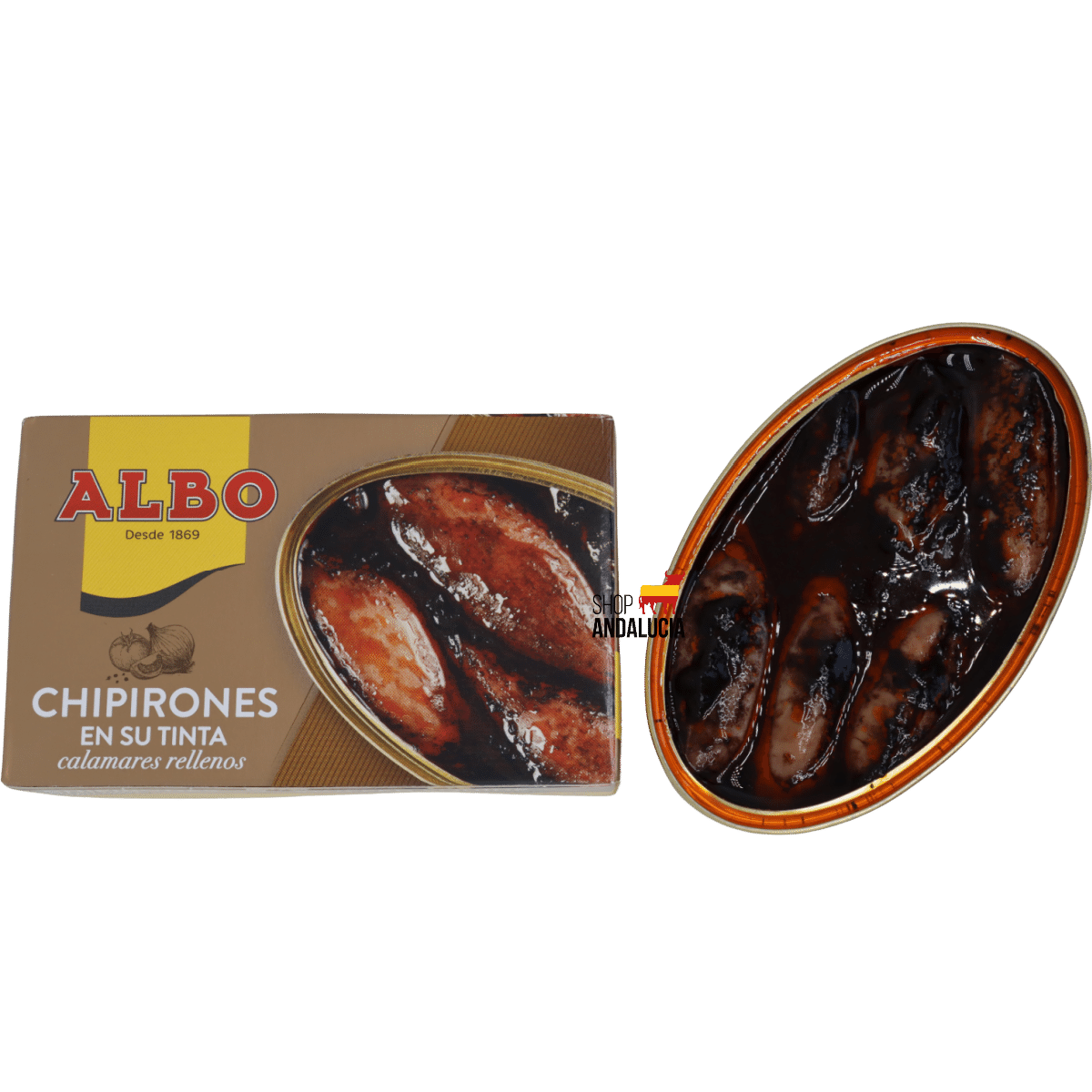 Les Chipirones en su Tinta d'Albo sont de petits calmars soigneusement préparés dans leur encre pour une saveur riche. Savourez cette délicatesse en tapas ou ajoutez-la à des plats de pâtes. Un plaisir espagnol authentique à chaque bouchée ! 115 g