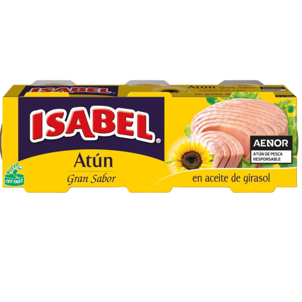 Délicieux thon de la marque Isabel. Chaque emballage contient six boîtes de thon soigneusement sélectionnées, reconnues pour leur excellente qualité et saveur. Le thon est idéal pour diverses applications culinaires, telles que les salades, les sandwiches.