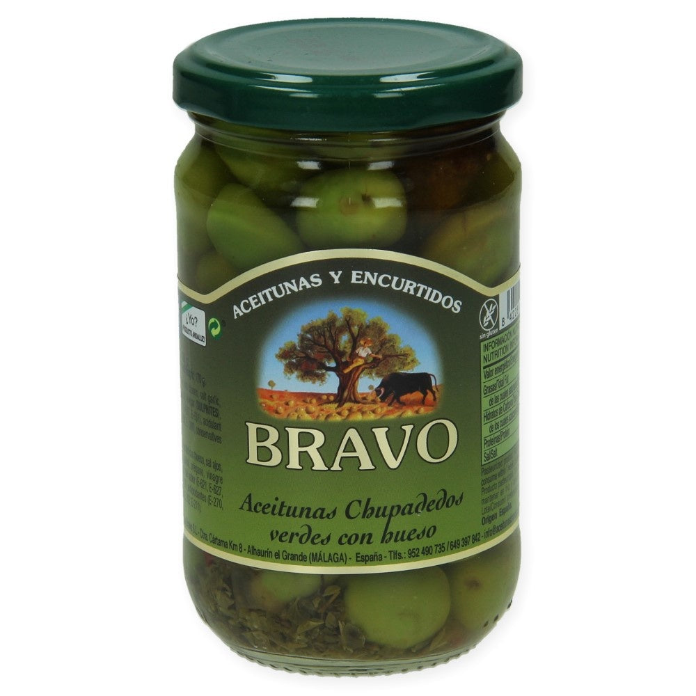 Deze Spaanse olijven met pit zijn gekruid met peper, knoflook, oregano en olijfolie, wat resulteert in een zeer aangename zoete smaak Inhoud: 170 gr
