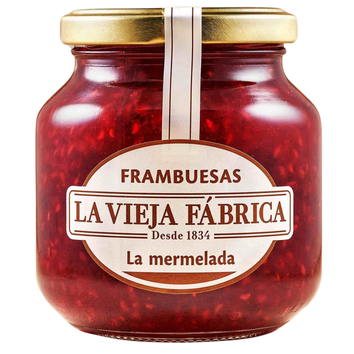 La Vieja Fabrica Frambozenjam is een heerlijke Spaanse lekkernij die exclusief verkrijgbaar is in onze online winkel. Deze ambachtelijk bereide frambozenjam wordt met zorg gemaakt, met sappige frambozen als belangrijkste ingrediënt. Geniet van de pure en rijke smaak van deze jam op brood, toast of als een smaakvolle toevoeging aan desserts.