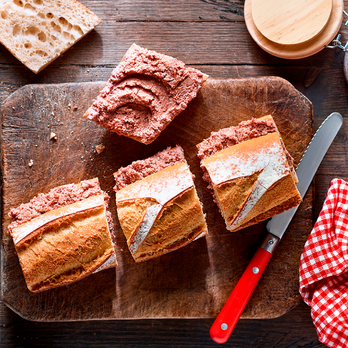 Paté van hoogwaardige levers en vleesvarianten met een vleugje zout, gekruid met peper en ui om de heerlijke smaak te accentueren wanneer je het op een sneetje brood smeert.