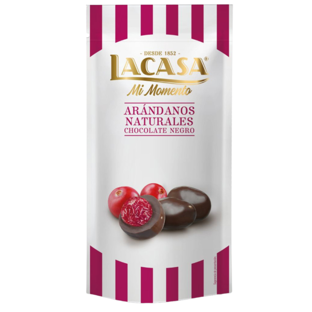 Mi Momento Arándano Chocolate Negro combineert de friszoete punch van rode bosbessen met de diepte van pure chocolade. Het contrast tussen knapperige coating en zachte kern maakt elke hap verrassend – compact, chic en onweerstaanbaar.