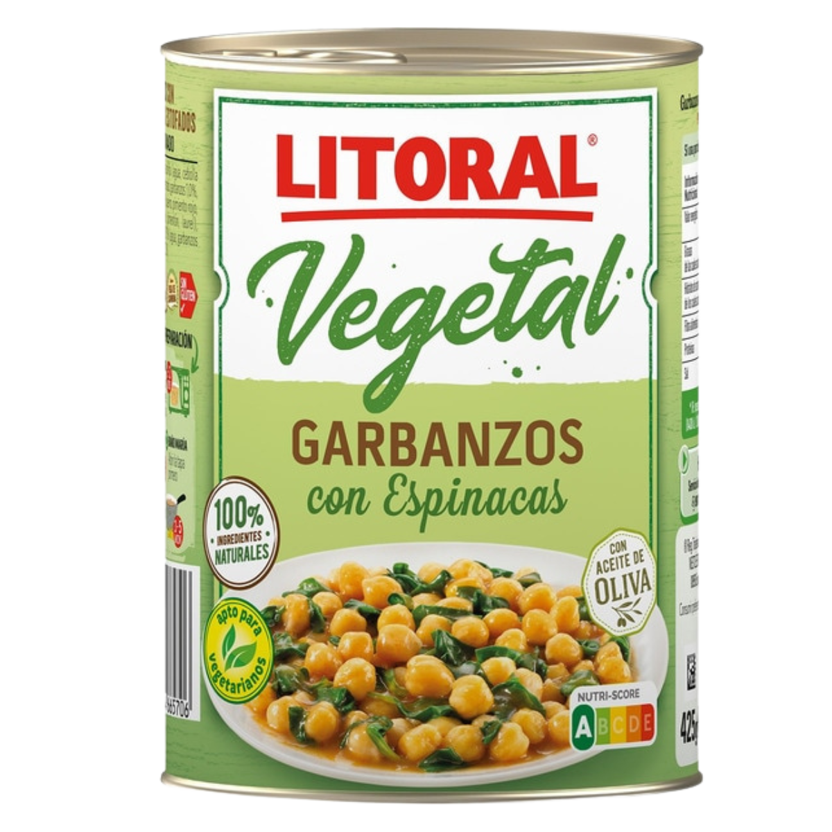 Ervaar de authentieke smaken van Spanje met Litoral Garbanzos con Espinacas. Deze zorgvuldig samengestelde kikkererwten met spinazie belichamen de rijke culinaire tradities van Spanje. Geniet van de perfecte balans tussen fluweelzachte garbanzos, verse spinazie.