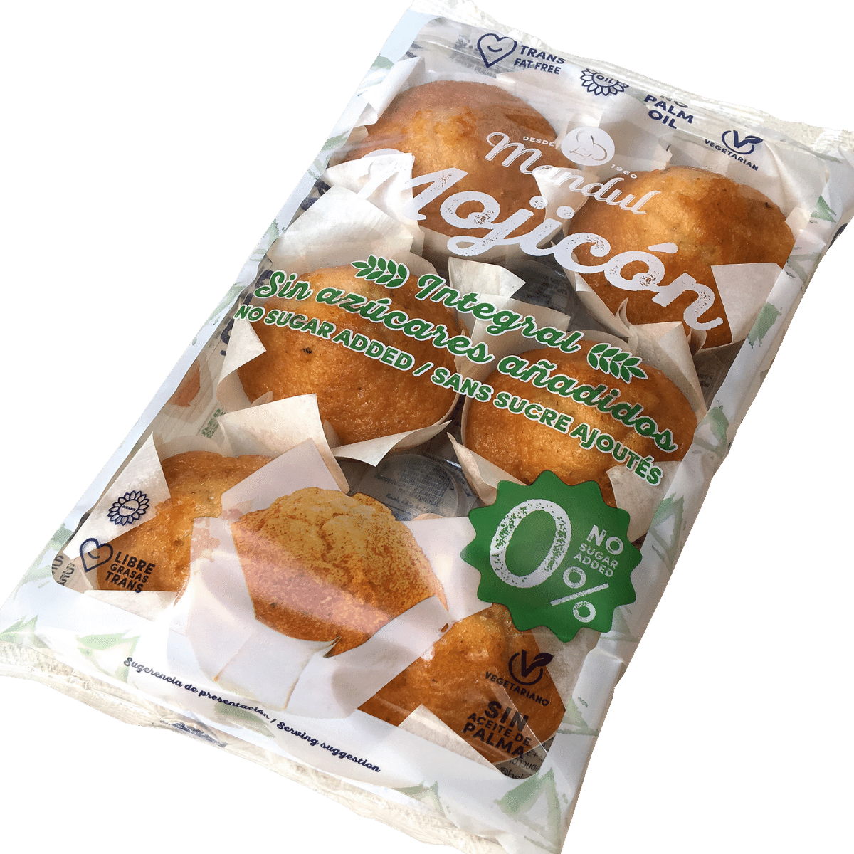 Mandul Mojicón 0% brengt de klassieke Spaanse mojicón (grote, zachte cake) in een lichtere versie: zonder toegevoegde suikers, gezoet met maltitol en aangevuld met vezels. De textuur is luchtig en veerkrachtig, de smaak rond en mild zoet — typisch Spaans gebak, maar dan bewust en modern.
