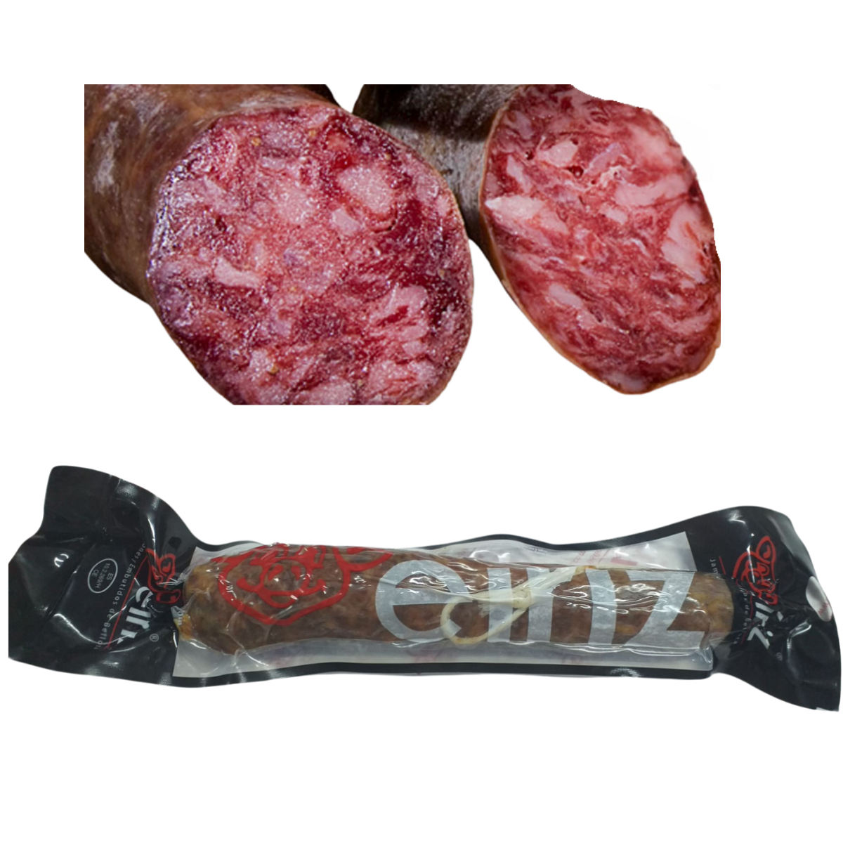 Salchichón Bellota 100% Ibérico van Eíriz is een premium Spaanse worst van varkens die uitsluitend eikels gegeten hebben. Deze authentieke worst heeft een rijke, nootachtige smaak en een zijdezachte textuur en een zorgvuldige rijping. ong.475 gr