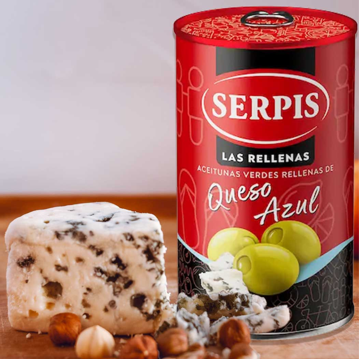Serpis koppelt bijna een eeuw vakmanschap aan moderne kwaliteitscontrole. De manzanilla blijft sappig en stevig, terwijl de blauwkaaspasta voor een romige, uitgesproken smaak zorgt – ideaal voor tapas, salades en borrelplanken.