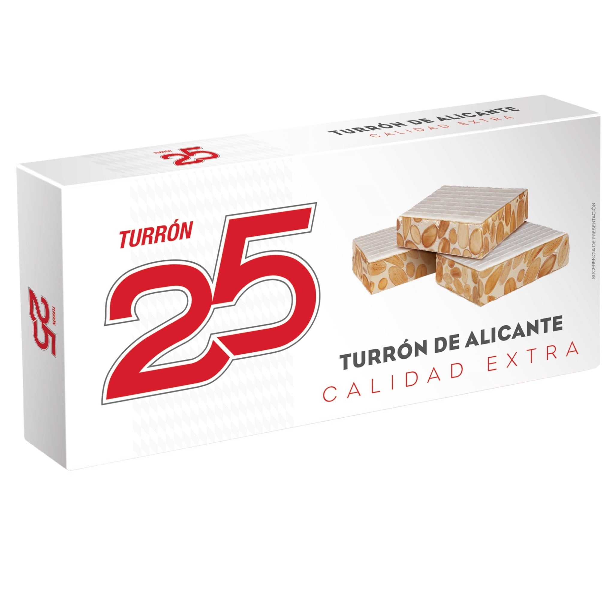 Type: Turrón de Alicante (hard) – “Extra” kwaliteit. Smaakprofiel: knapperig, amandelrijk, milde honingzoetheid, schone afdronk. Herkomst/operateur: Jijona/Alicante, Spanje — Enrique Garrigós Monerris (Turrón 25). Verpakking: kartonnen doos, reep 200 g. Producent: Enrique Garrigós Monerris. Netto gewicht:200 g. Spaaractie: spaar bij elke aankoop automatisch punten voor korting. Volumekorting: mogelijk bij meerdere stuks. Dieetinformatie: niet geschikt voor noten-/ei-allergieën; van nature glutenvrij zuivelvrij recept, maar let op mogelijke sporen. Verzending & levering: bestel vóór 15:45 u = verzonden op dezelfde werkdag; gratis levering vanaf €65.